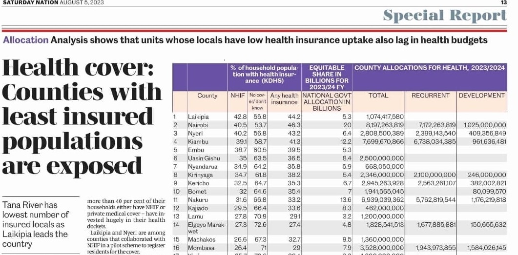 Laikipia continues to be the first (number 1) County in Kenya in NHIF coverage, at 43%.
